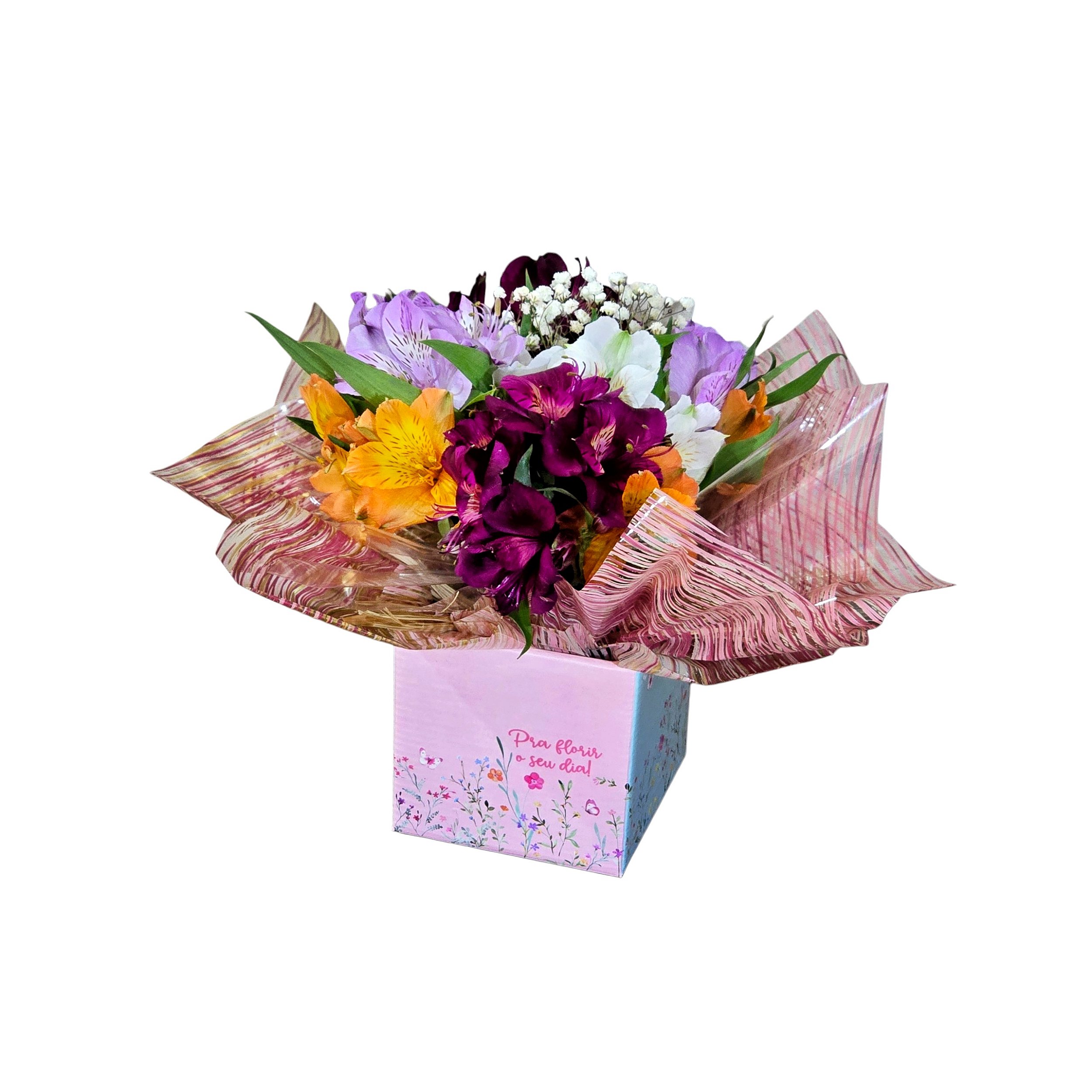Por ser um produto natural, as astromélias podem variar no tamanho, no estágio de abertura, na tonalidade e nas cores disponíveis — as cores apresentadas na foto do anúncio são referência e podem diferir do produto entregue, pois a oferta varia de acordo com a estação e a safra de cada semana. A arte do cachepô cartonado também pode variar conforme a disponibilidade na data da compra. Garantimos sempre a harmonia, a qualidade e a alegria do arranjo.