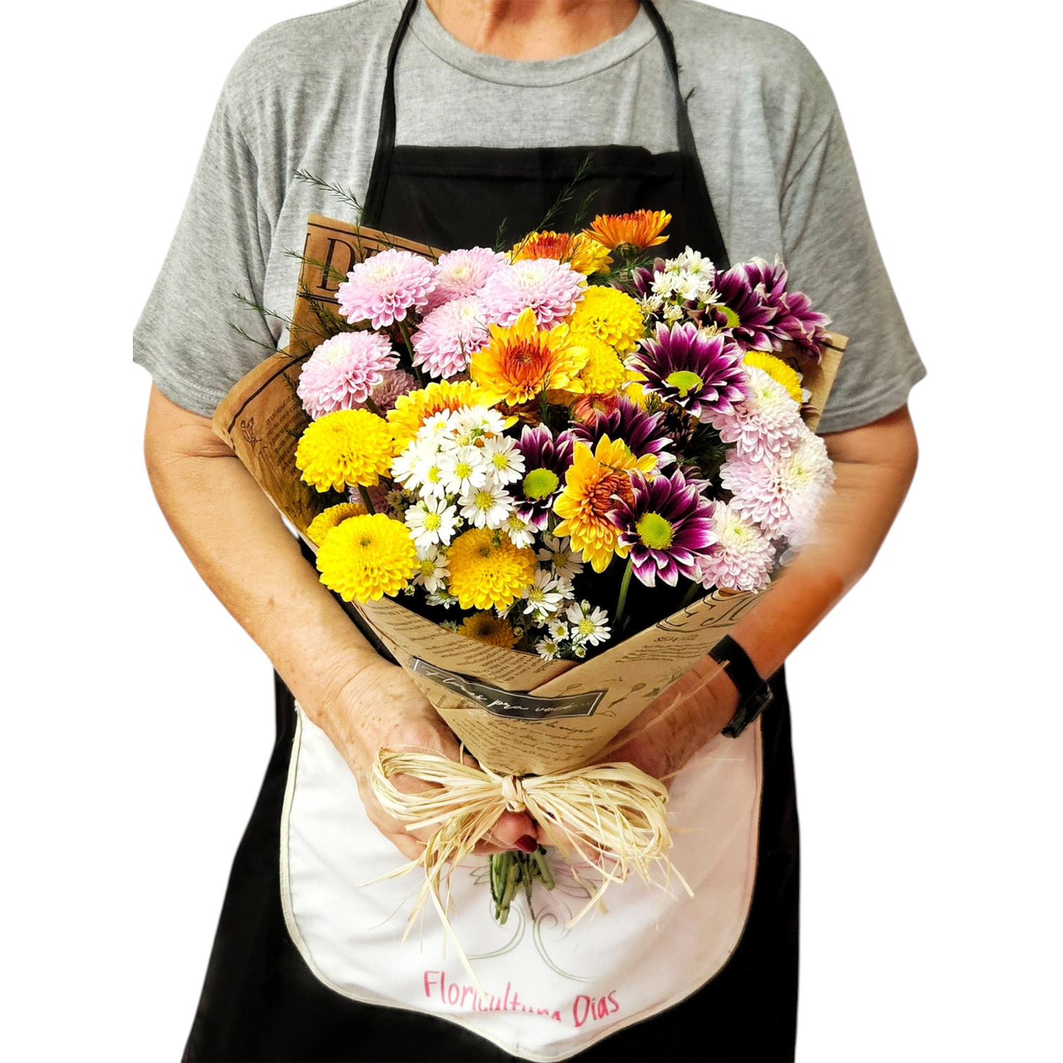💬 Observação Importante: Este é um buquê sazonal. A composição exata das flores do campo, assim como suas cores, podem variar significativamente conforme a melhor disponibilidade do dia, mas sempre mantendo o estilo rústico, o volume e a beleza do buquê.