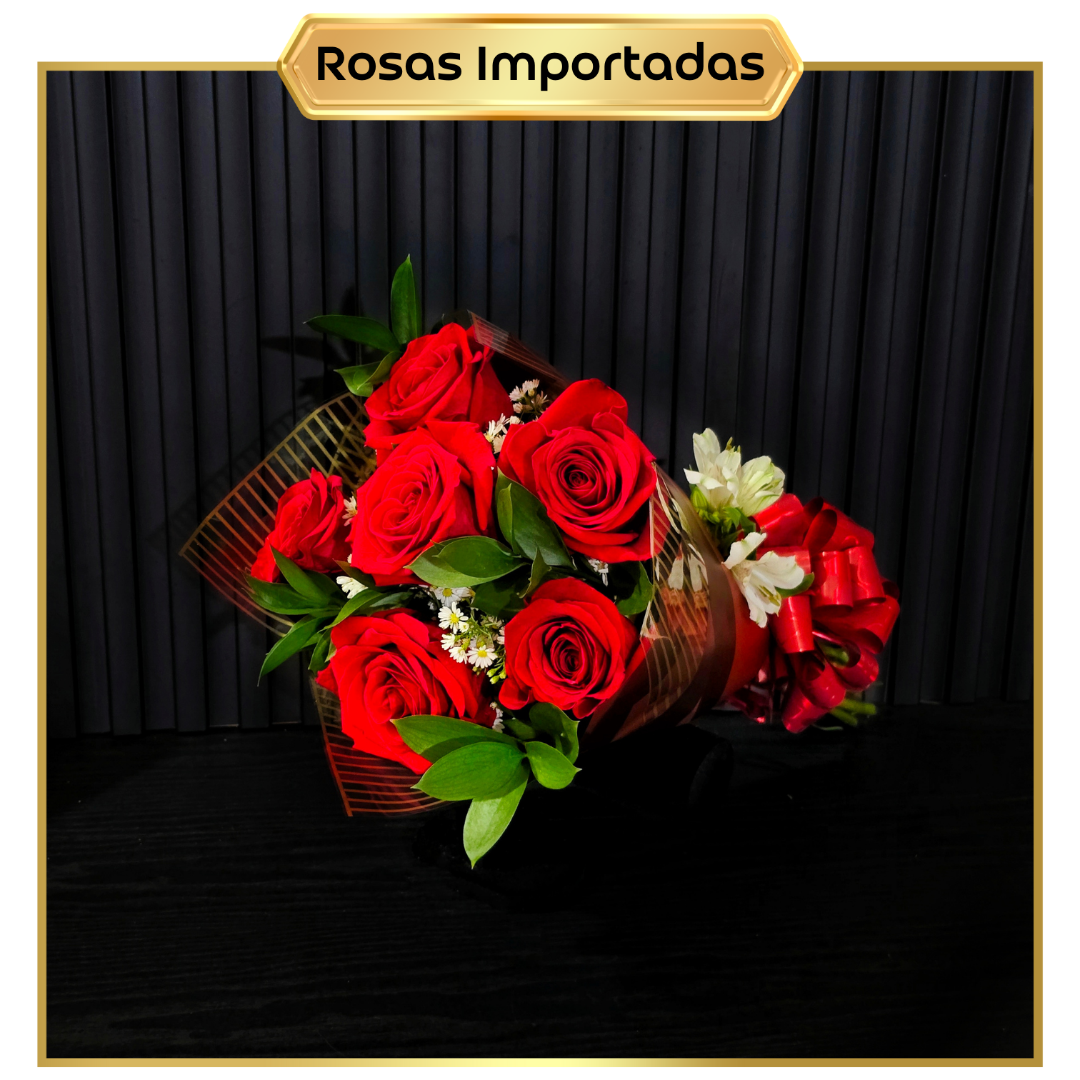💬 Observação Importante: Por se tratar de um produto importado e natural, as rosas podem ter variações no tamanho e no estágio de abertura (mais abertas ou fechadas), além da tonalidade exata do vermelho. O tipo da folhagem também pode variar. Garantimos sempre a procedência, a qualidade superior e a beleza impactante do seu buquê.