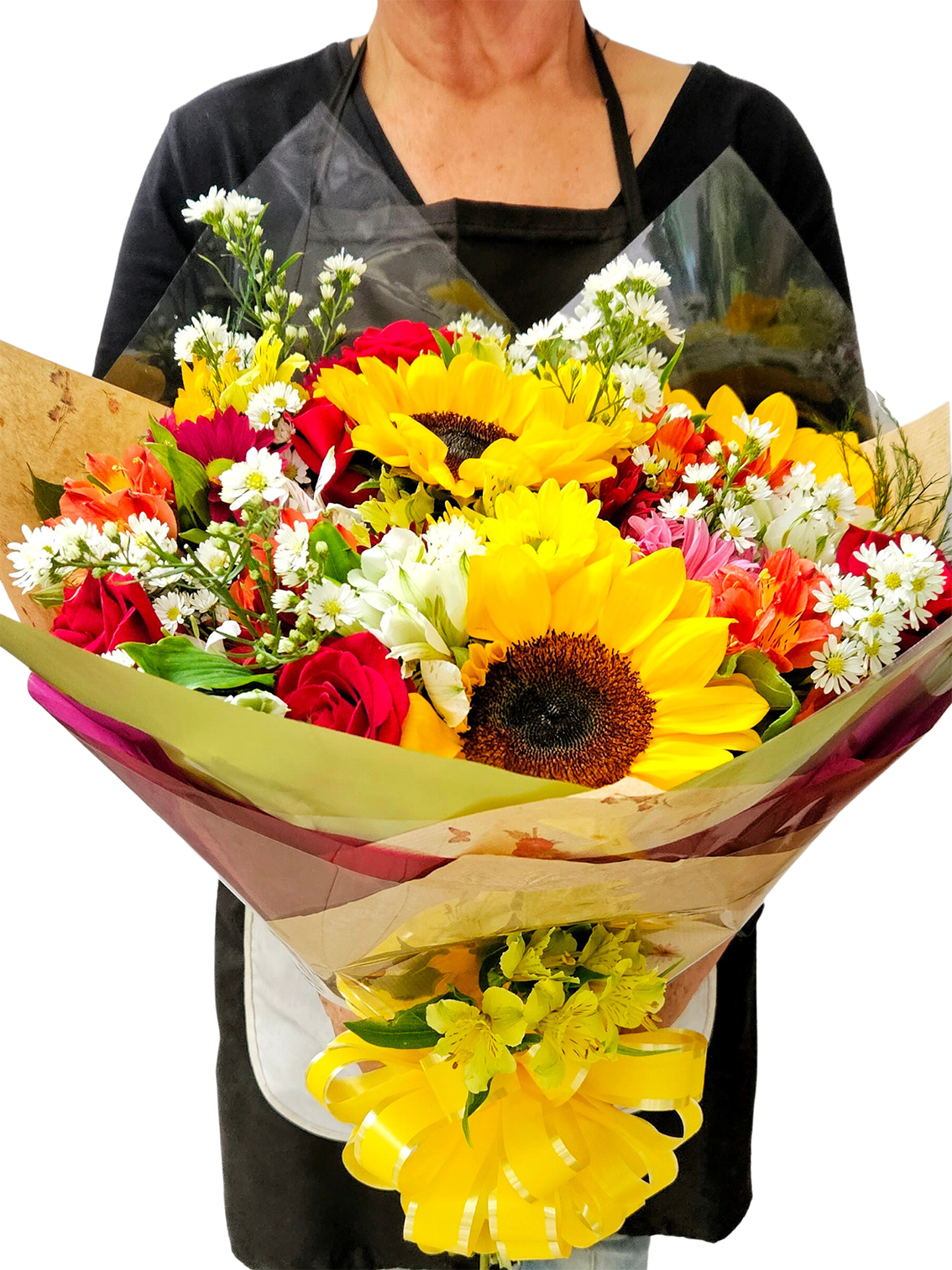 Inspirado na exuberância e na diversidade das ilhas dos Açores, este buquê é uma verdadeira celebração em forma de flores. Perfeito para quem busca um presente de grande impacto em São Paulo, o Buquê Açores combina a energia dos girassóis, o romance das rosas e a alegria contagiante das astromélias e flores do campo. É um buquê grandioso, vibrante e inesquecível, ideal para as ocasiões mais especiais.