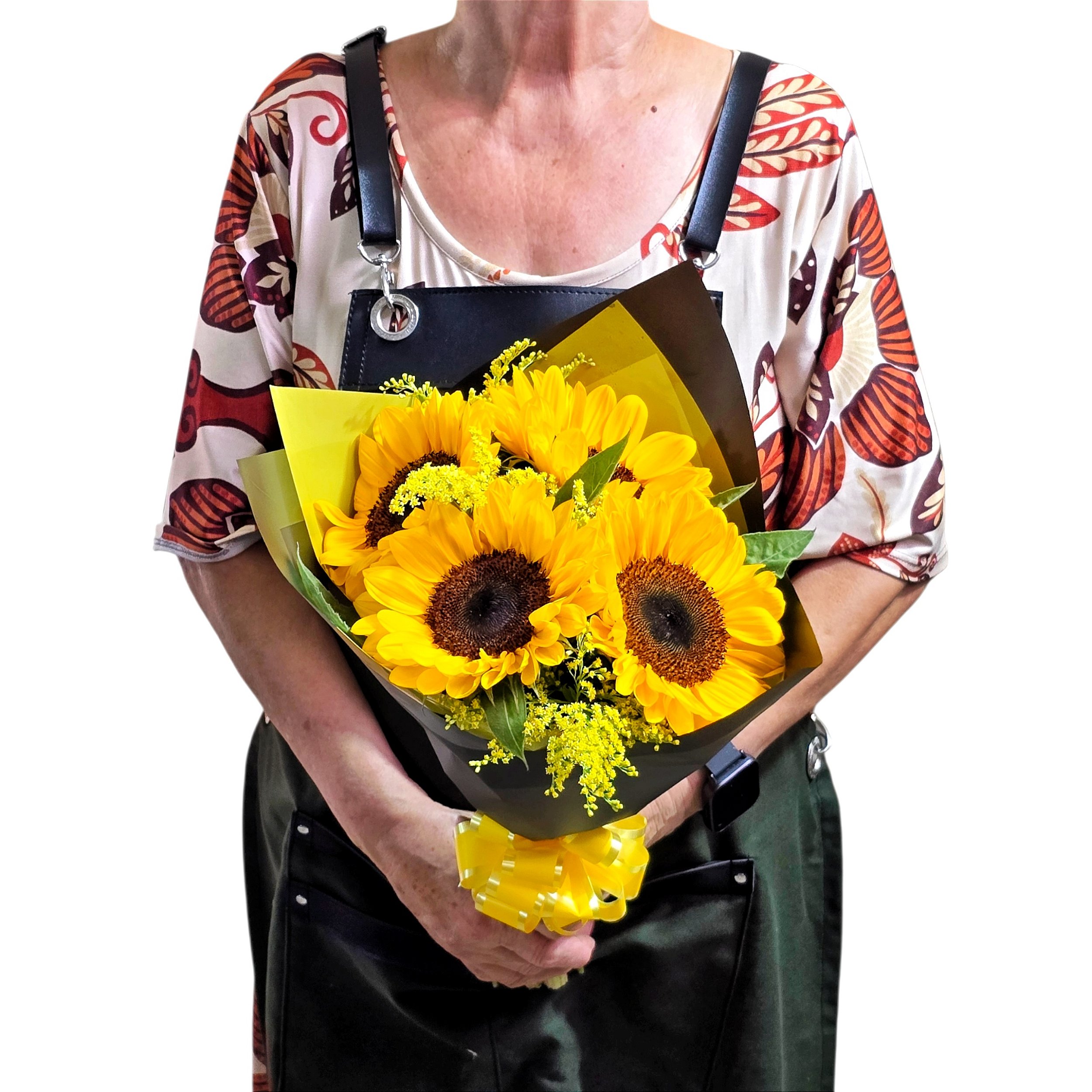 O Buquê Solavie é um presente vibrante e cheio de personalidade. Composto por girassóis radiantes e finalizado com um contraste moderno de papel preto e laço amarelo, ele foi criado para iluminar qualquer ocasião em São Paulo. A combinação do amarelo intenso com o acabamento marcante transforma este buquê em um gesto ousado, alegre e inesquecível.