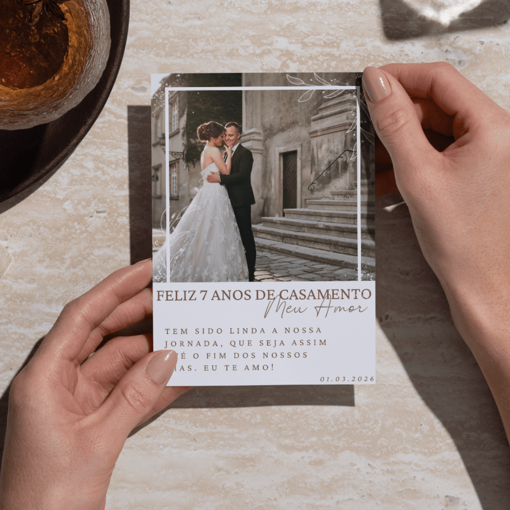 O Cartão de aniversário de casamento personalizado é a forma perfeita de expressar sentimentos de maneira única e inesquecível. Mais do que uma mensagem, ele carrega uma lembrança especial através de uma foto e palavras que representam o seu carinho.