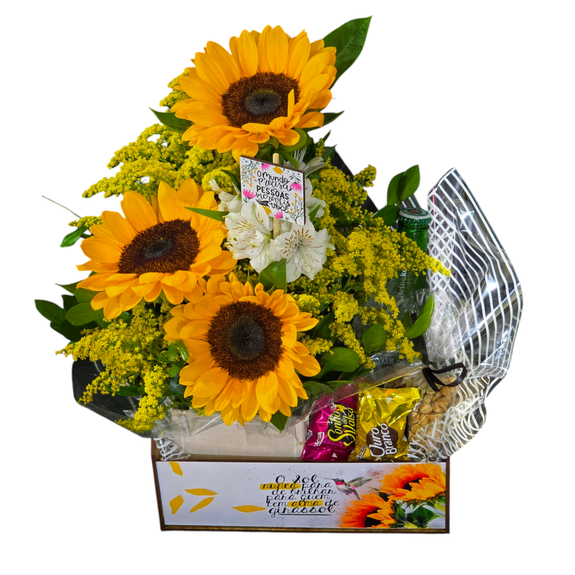 O Kit Alameda é a forma perfeita de celebrar os bons momentos e levar a energia do sol para alguém especial em São Paulo. Este kit completo vem em um charmoso caixote de MDF e combina um vibrante arranjo de girassóis com uma cerveja Heineken gelada e deliciosos petiscos. É o presente ideal para um happy hour surpresa, para parabenizar por uma conquista ou simplesmente para desejar um dia incrível.