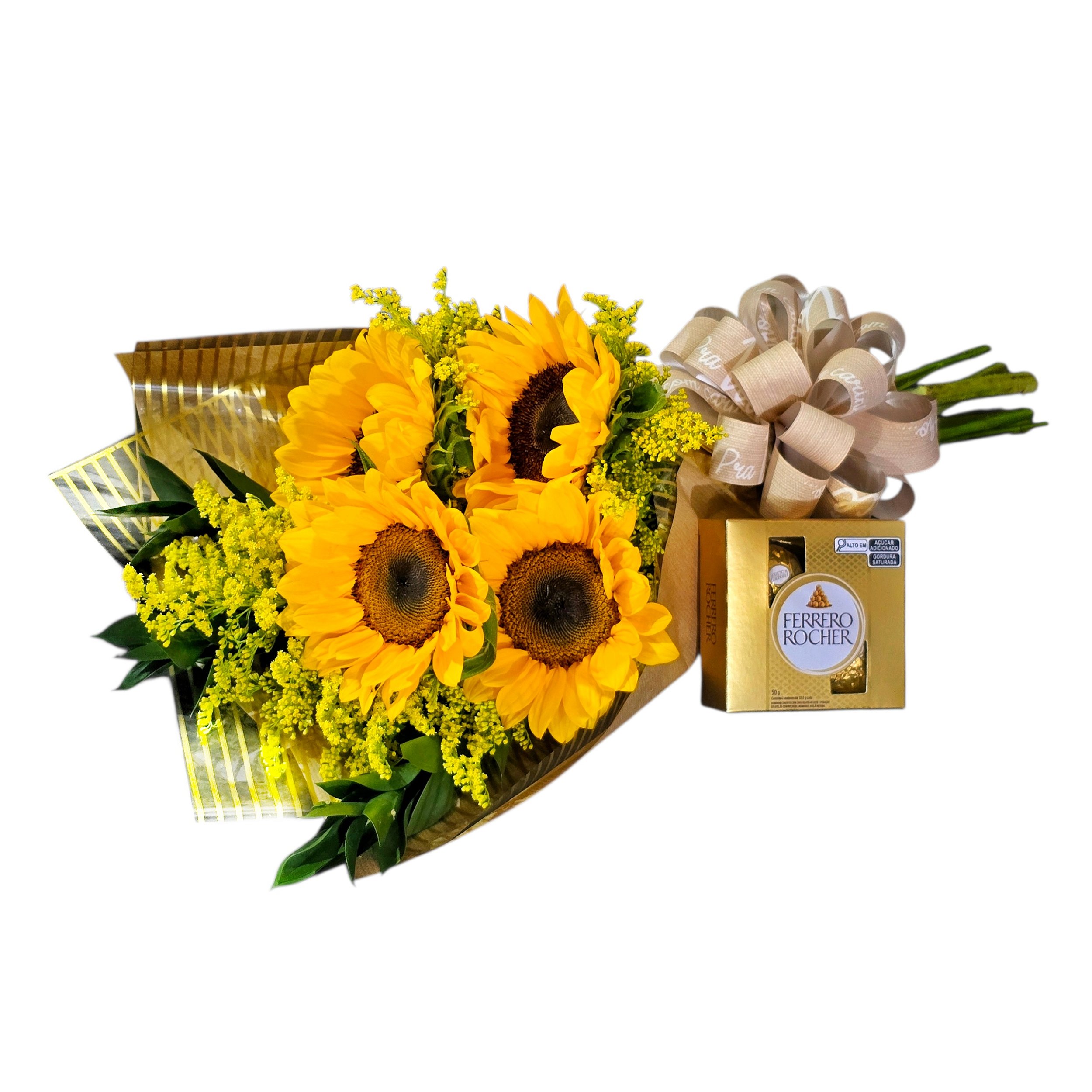 O Kit Baronesa é a escolha perfeita para quem busca um presente elegante e vibrante em São Paulo. Esta combinação encantadora une a alegria de um buquê com 4 girassóis ao sabor sofisticado dos chocolates Ferrero Rocher. É um presente criativo e de bom gosto, ideal para surpreender e demonstrar seu carinho em qualquer ocasião.