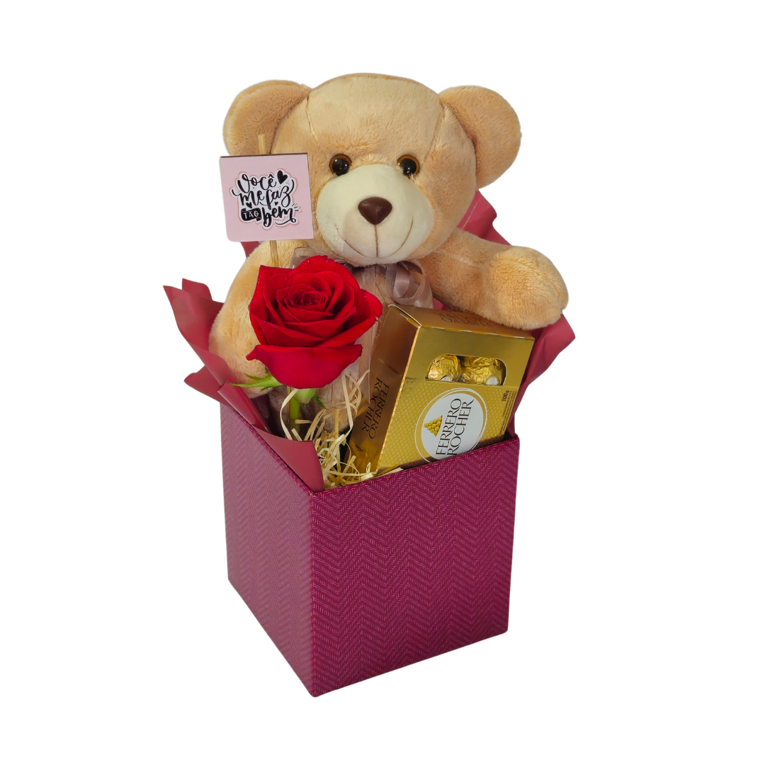 ❤️ O Clássico Gesto de Amor: Rosa, Pelúcia e Chocolate