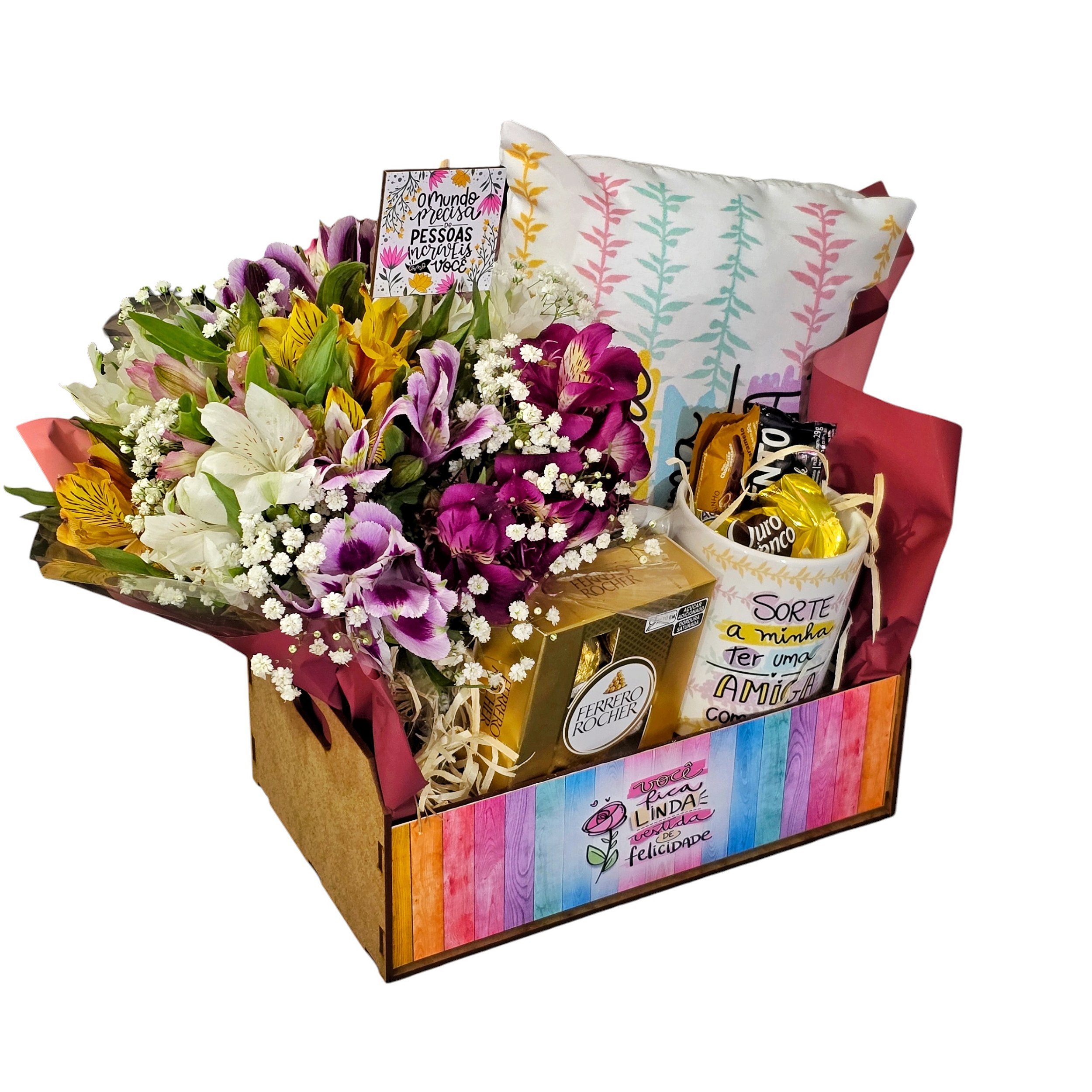 💬 Observação Importante: Por ser um produto com flores da estação, as cores das astromélias podem variar conforme a disponibilidade. Na falta dos bombons sortidos, serão substituídos por outros de igual ou superior valor.