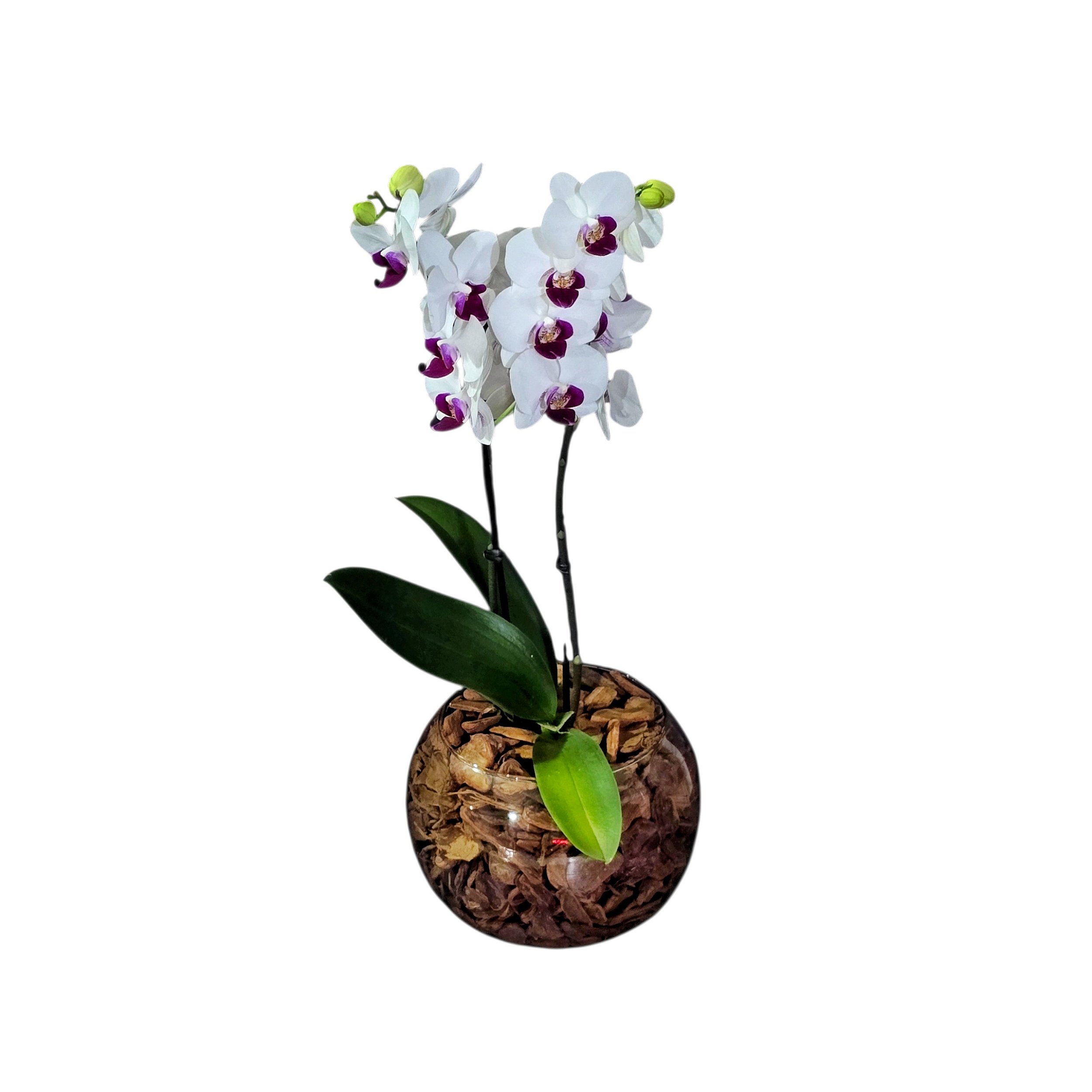 A Mini Orquídea Phalaenopsis Branca é a forma mais charmosa de presentear com requinte em São Paulo. Ideal para decorar mesas de trabalho ou pequenos espaços, ela traz toda a sofisticação da orquídea Phalaenopsis em tamanho compacto. Apresentada em um moderno vaso de vidro estilo aquário, esta mini orquídea é um presente criativo, delicado e de beleza duradoura.